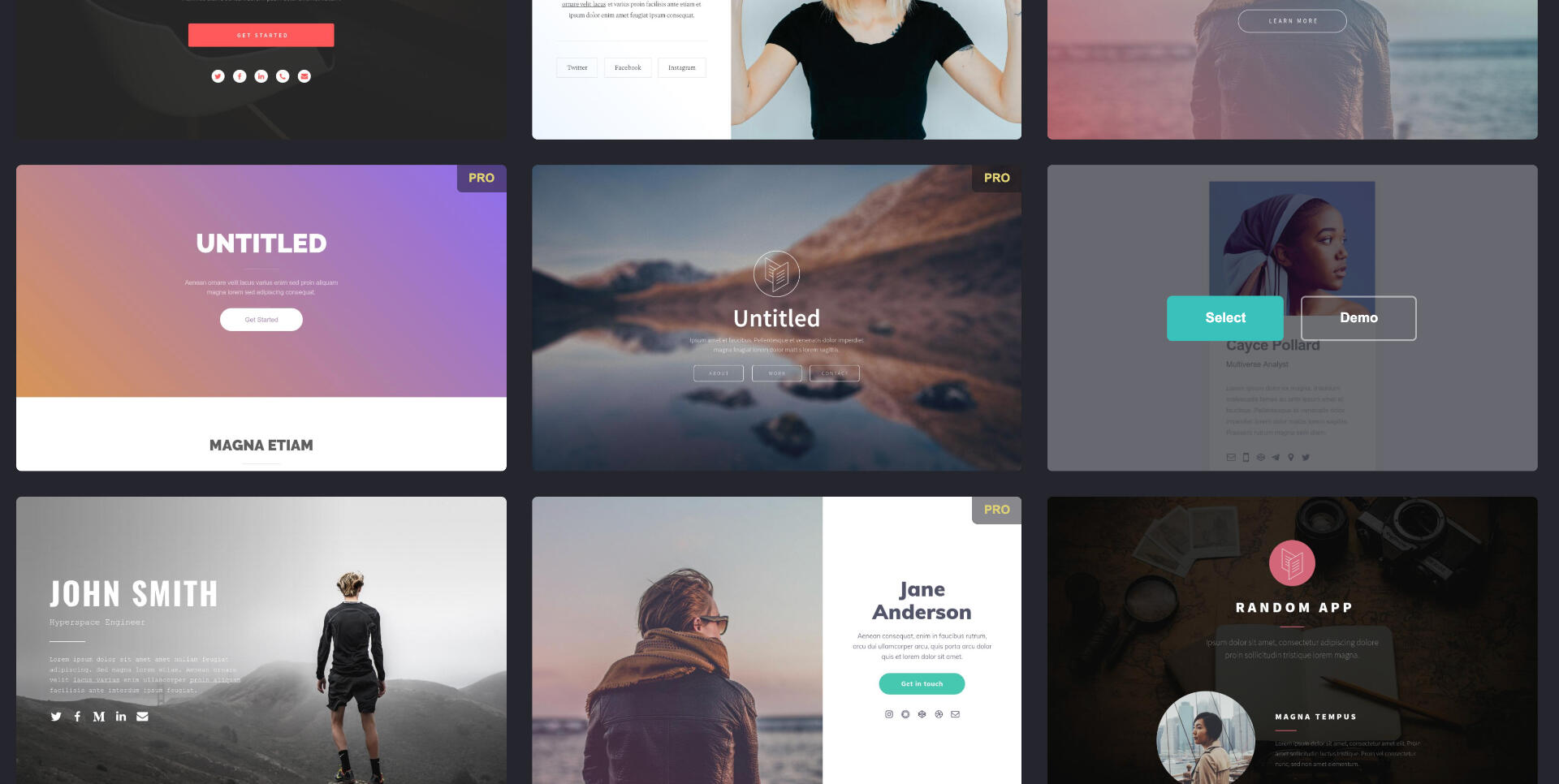 Open a new tab and head to Carrd.co (yes, you spell it with an extra 'r' - pronouncing it like a pirate is optional).We can get started without creating an account just yet. Click on 'Choose a Starting Point'.You see a variety of pre-made templates ready for you to drop in your content. If you're comfortable with website builders feel free to pick a template of your choice however I'll select a mobile friendly template for this tutorial. Select the Cayce Pollard template (#51 as shown in the image below) as a starting point - no pro account* needed at this point!(Don't worry, you can choose more templates and create ones with your own style after this tutorial.)